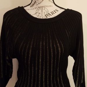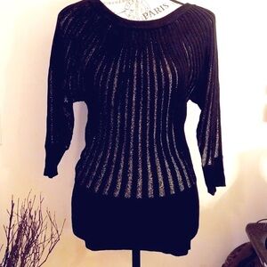 Black and Gold Mettalic strip sweater. Stretchy material. Long sleeves.