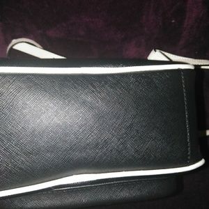 Black and white modern guess 1981 book bag purse. 5 pocket inside two pocket outside durable dependable sexy can be dressed up or down you don't want to miss out on this fantastic buy.
