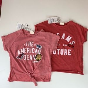 NWT. Zara bundle girls T-shirts with appliqué, short sleeves. Size 9-10.
