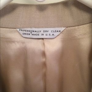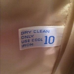 Excellent condition; Very limited wear; Custom made; Lining; Pockets; Buttons on sleeve; Dry Clean only; Jacket is Size 10; Skirt is Size 8