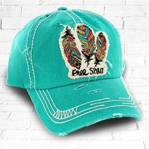 JUST IN!!! FREE SPIRIT Distressed Teal Feather Hat