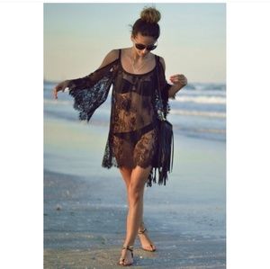 Sexy Lacy Boho Beach Cover Up in Black! Goes with everything! Cold Shoulder style. Sold out and in Demand!