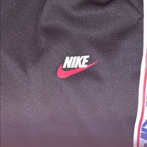 Nike design down leg (royal blue, navy, red and white) on black pants