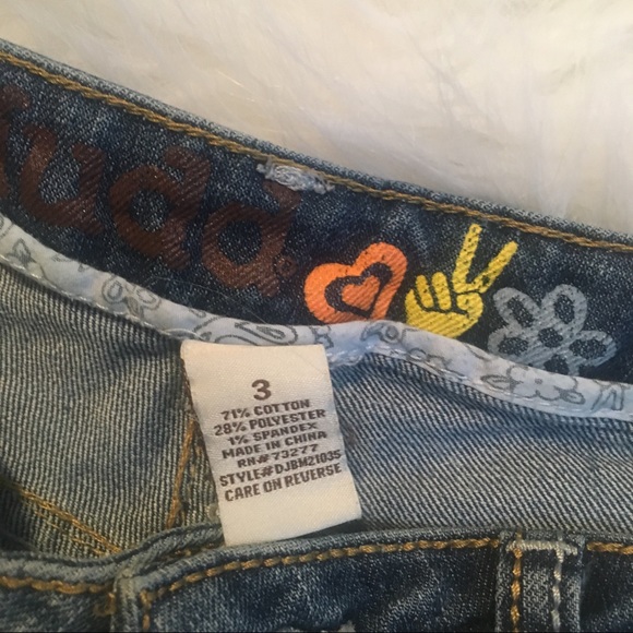 Super cute little patched, cuffed denim shorts, previously owned, very lightly worn. In great condition!