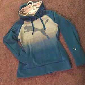Blue greenish colored puma hoodie pull over. With pockets in front. Great condition. Size small, fits like a small