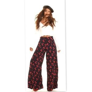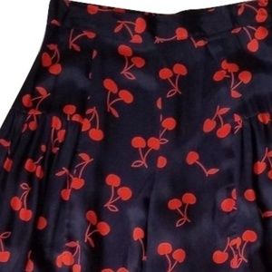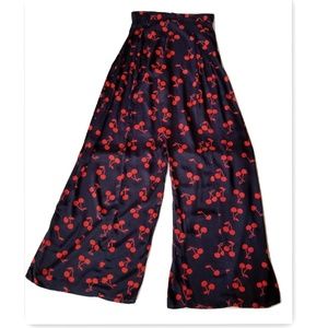 Lucy Love Cherry Bomb pant. Rockabilly, retro style in a navy and red cherry print fabric. High waisted pants with gathers at the side hips. Super wide leg. Side invisible zipper. Brand new with tags, purchased directly from the manufacturer.