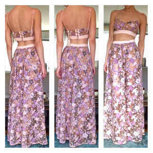 Partially lined tulle (nude panty lining) is embroidered with a garden of delightful florals, drifting across the expanse of this full maxi skirt. A built-in panty achieves a perfectly executed look.
