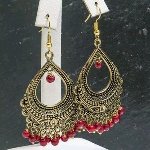 Beautiful Red Bohemian Beaded Statement Earrings in Tibetan Silver. Come in gift pouch! Measure approximately 2.5" X 1.3" and weigh 13.3 grams total.