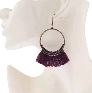 NEW bohemian style purple tassel dangle hoop earrings. Other tassel earrings available - See separate listings.