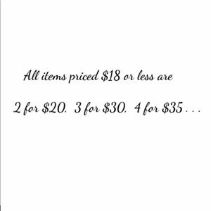 All items priced $18 or less are 2/$20, 3/$30, 4/$35 . . the more you buy the more you save 200+ sale items available