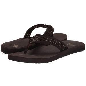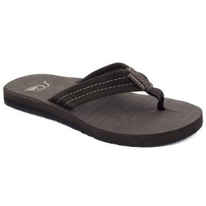 Flip-flop featuring suede straps with stitching detail and contrast stripe on midsole