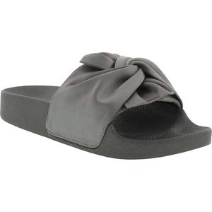 KCNY Shower Twist girls' slide is a must have. The knotted satin strap gives the classic slide a clean and refined look. The contoured footbed add an extra layer of comfort . Fit - True to size