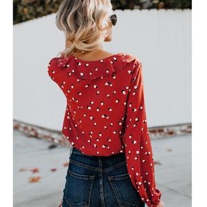 Red ruffled blouse