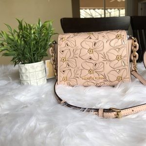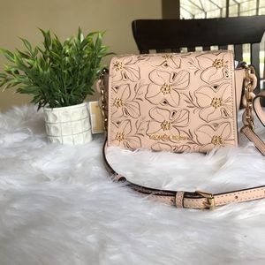Brand/Style: Michael Kors Sofia Ballet Pink Floral Leather Gold Studded Hardware Crossbody Purse