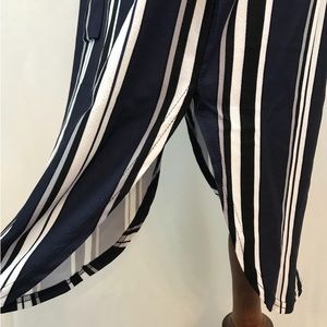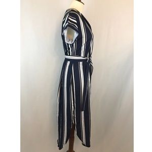Navy & White Striped Short Sleeve O-Neck Midi with a High/Low Side Hem
