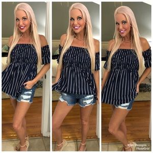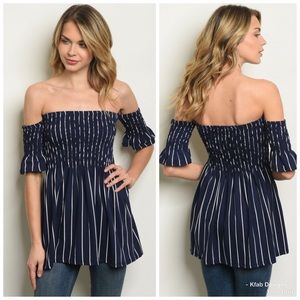 💕LAST 1! 💕Navy/White Off Shoulder Smocked Tunic!