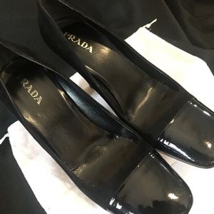 With GORGEOUS silver PRADA accent detail on heels-Includes 2 dust bags