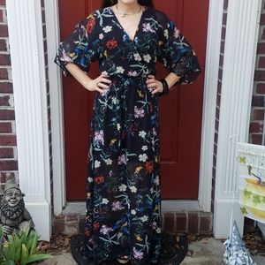 NY & Company Floral Bird Print Kimono Maxi Dress