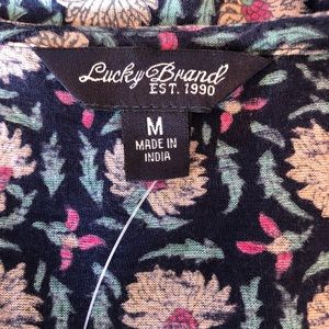 Lucky Brand Top. Size medium. Comfortable and classic style for everyday wear. V neckline with unique detail and loose fitting. Cute blue tone pattern. NWT new with tags.