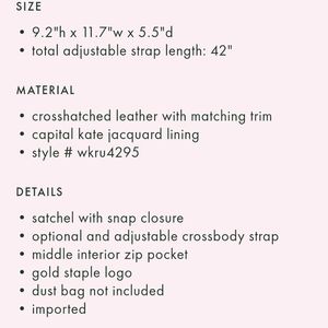 Gently used and very nice color for spring, summer and fall. Clean inside and outside and comes from a smoke free home. Each bag comes with a strap so u can wear it as a crossbody too.
