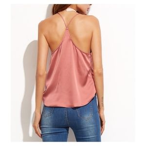 Pink Sleeveless Satin Wrap Cami Top Blouse