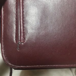 Gently used and in excellent condition. One small tear at base of exterior coin pocket on back