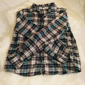 Woman Button down plaid shirt