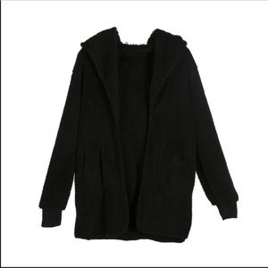 Featuring soft Sherpa fabric, front pockets, hood, open front and teddy bear feels.