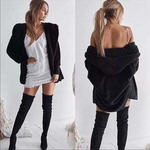Black cozy teddy slouchy cardigan