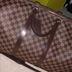 Selling my Louis Vuitton Brown Damier Large Duffle Bag. Was well taken care of. I got a new Louis luggage for Christmas and haven’t used my duffle as much so decided to sell it. The name tag is stamped with my initials so it will not come with it unless you want it. (Initials are K.P.) The wear and tear is very minimal and is not noticeable unless you put your face very close to it, which is just the corners as shown in the pics. Value of duffle has gone up too $1990. Original Dustbag included