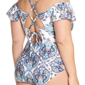 Becca Off the Shoulder Tie Back One Piece Swimsuit