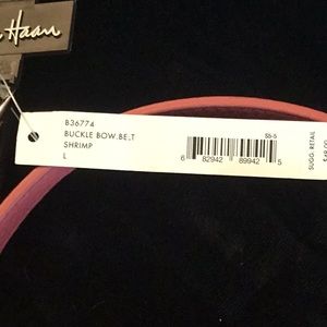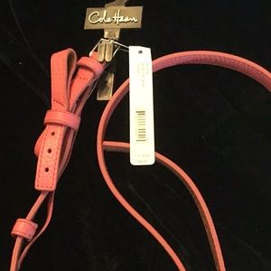 COLE HAAN WOMEN’S BELT. 1/2” WIDE. BELT IS 55” LONG. IT HAS A BOW. LEATHER. SHRIMP COLOR. SILVER BUCKLE. NEW!