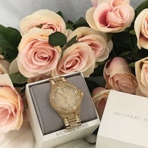 Authehtic MICHAEL KORS Gold Crystal Pave Ladies Watch