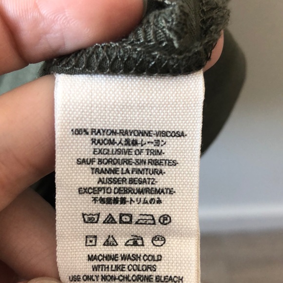Unique Army Green Free People Dress. Two front zipper slits. Side zipper too. Two front pockets. Keyhole V-Neck w Button clasp. Buttons at shoulders.