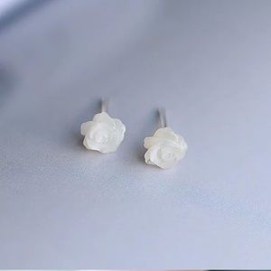 New! White Rose Stud Earrings