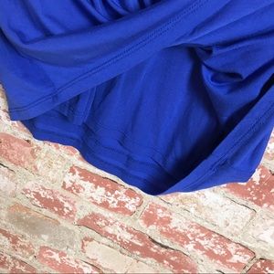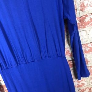 Sweet cobalt blue dress, rouche side, wrap-over V-neck, dolman sleeve, straight skirt, pullover style, lined