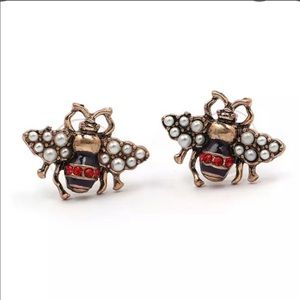 Rhinestone pearl bee earrings antique gold boho . Super cute bee earrings brand new