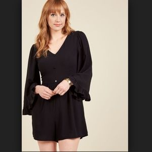 ModCloth Divine Downtime Bell Sleeve Romper in Black Womens Size XXS. new without tags. no flaws. tie waist.