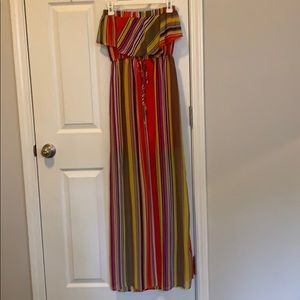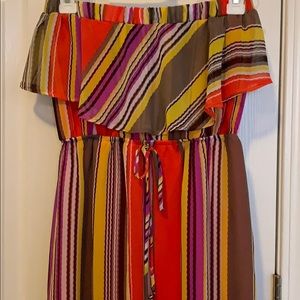 Boutique bought Callie Mac polyester strapless maxi slip-style dress. Above the knee orange slip underneath sheer material. Worn once to Valentine’s Day dinner.