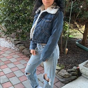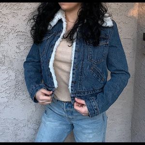 A fitted vintage Levi’s jacket that is Sherpa lined. Brand new with tags with an antique look. It is in a size Small