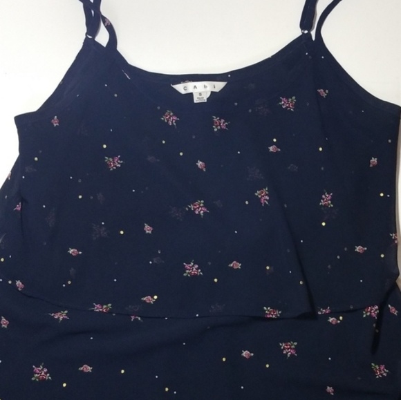 Cabi Nave Blue Floral Print & Gold Polka Dots Camisole Tank Women's Size S