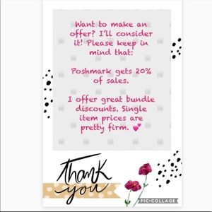 @cbiannarelli 👋🏼Welcome and thank you for the like! Buy 2 items and get 10 percent off! Buy 3 items get 15 percent off! I items and get 1 free! Feel free to ask questions! Thanks for looking! 💕