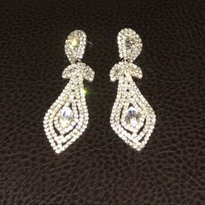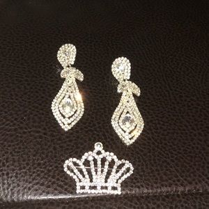 Gorgeous tear drop shaped earrings (do not have backings). Crown pin. Both used but in excellent condition no missing stones. Super sparkly!