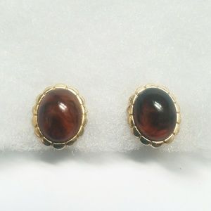 Gold Tone Avon Clip Earrings Faux Amber Cabochon
