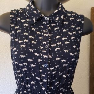 Allegra K Above Knee Cat Print Placket Sleeveless Dress. Great for Summer. Worn a few time. Too small for me now. #cat #dress #blue #summer #extrasmall #xs #allegrak