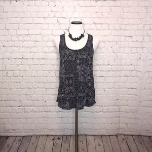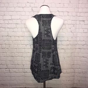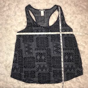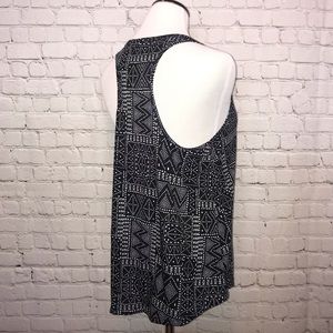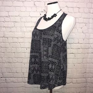 H&M Racerback Tank with black and white zigzag polka dot design. Very flowy and comfortable! Perfect for summer and looks great with white shorts. Scoop bottom comes up slightly on sides. 100% polyester and wears well without wrinkling.