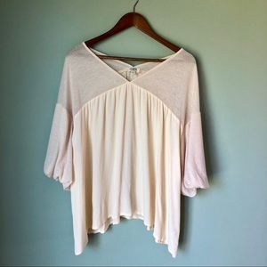 umgee Sheer Cream Puff Sleeve Flowy Blouse
