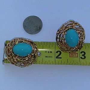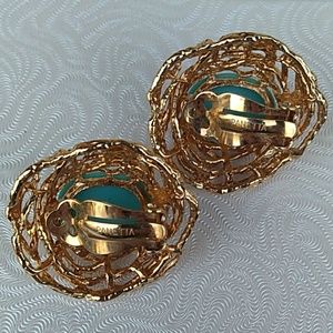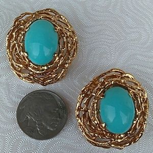 Gorgeous Super Rare, Highly Collectible Vtg (c.'40s -Early '50s) Panetta Gold -Plated Bird's Nest, clip-on / clip-back statement, earrings w BeaUtiful Robin's Egg Blue faux turquoise cabs.. Very Minimal wear, If that.. These beauties are in MINT Condition!