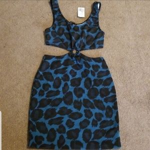 F21 animal print dress featuring open sides and silver ring in the middle.
