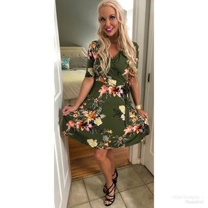 🥰LAST 1! Short Sleeve Olive Midi Wrap Dress!